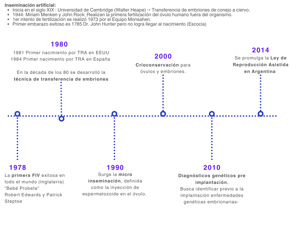 Figura 1. Línea temporal de la historia y evolución de las terapias de reproducción asistida.