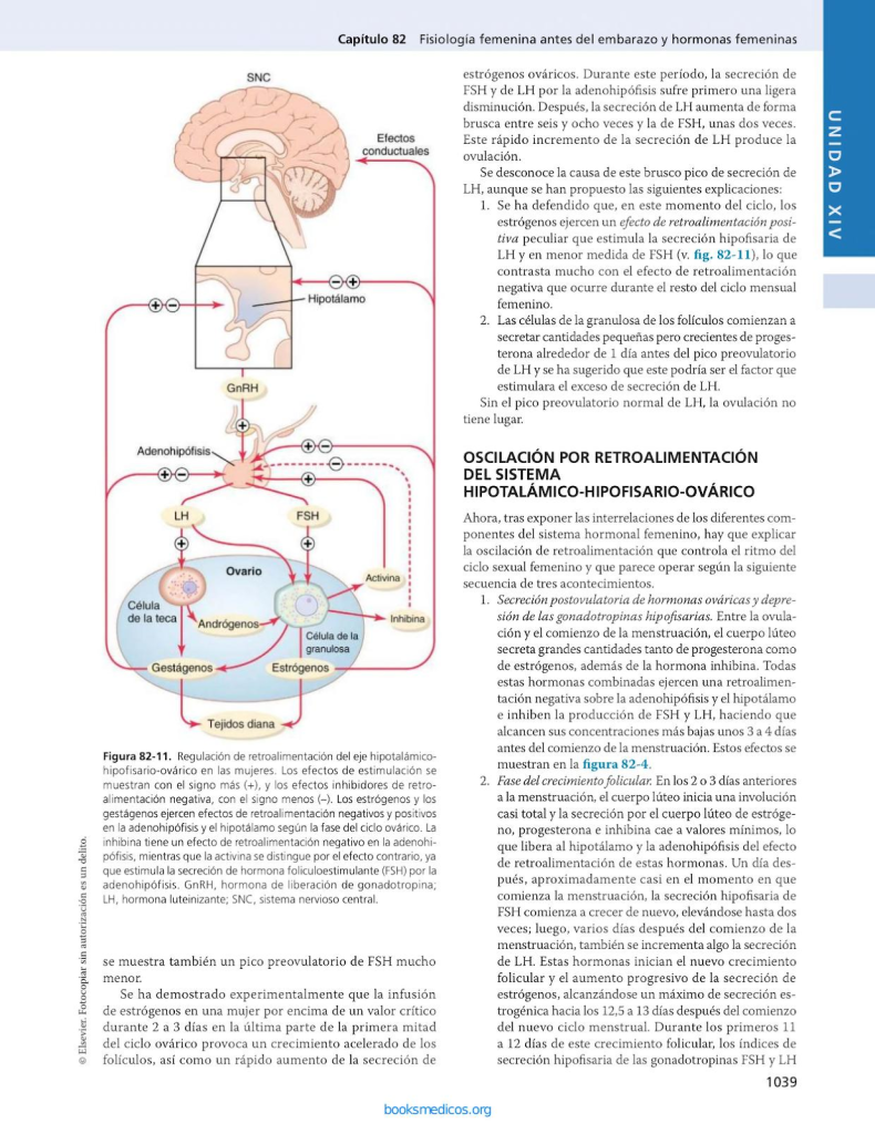 Fuente: Hall J, Hall M. Fisiología femenina antes del embarazo y hormonas femeninas: Regulación del ritmo menstrual femenino: interrelación entre las hormonas ováricas e hipotalámico-hipofisarias. Guyton y Hall Tratado de fisiología médica. 14ª Ed., Elsevier, 2020, P. 1037-1041. Libro electrónico ISBN: 9780323640046