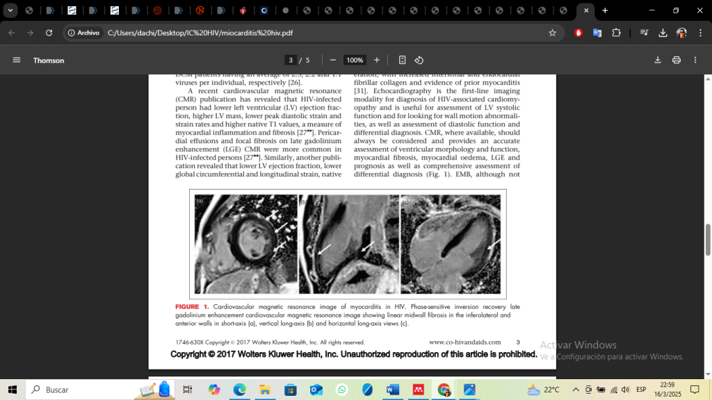 Fuente: Ntusi, N. A. B. (2017). HIV and myocarditis. In Current Opinion in HIV and AIDS (Vol. 12, Issue 6, pp. 561–565). Lippincott Williams and Wilkins. https://doi.org/10.1097/COH.0000000000000416